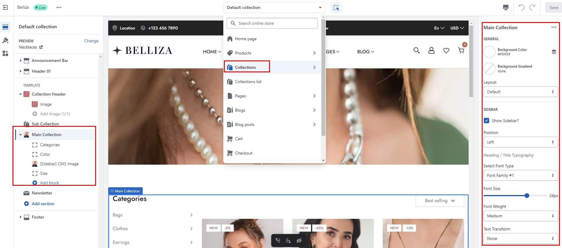In Collection Header, you can set up for Collection Image and Collection Description