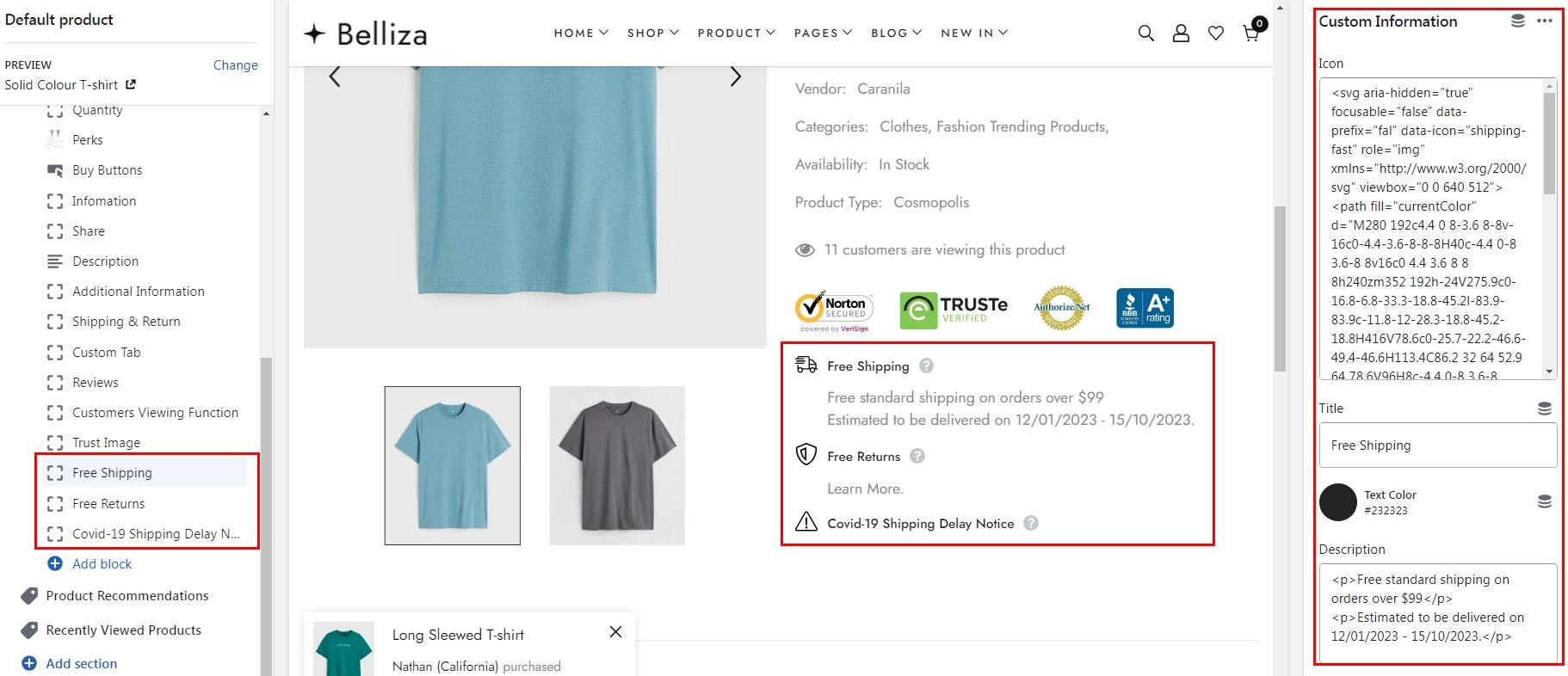 Click Add block from Product Information -> Choose Custom Information