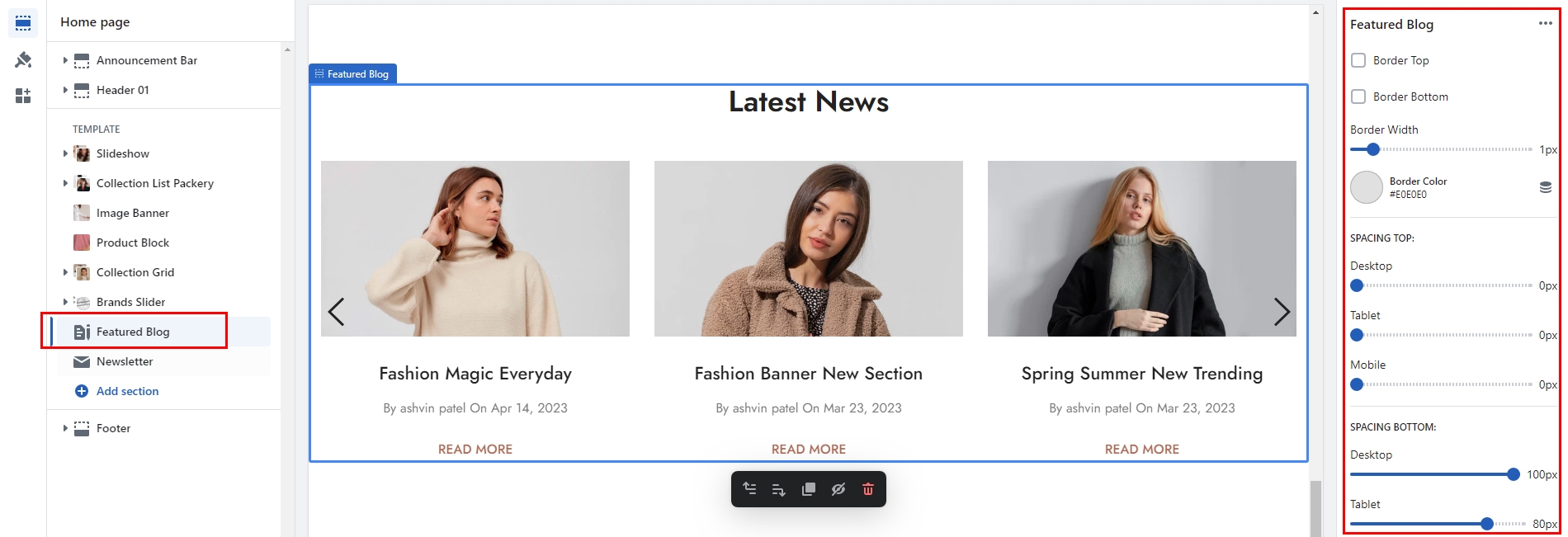 Determine the spacing of the section from its top and bottom sections on Desktop, Tablet and Mobile separately.
