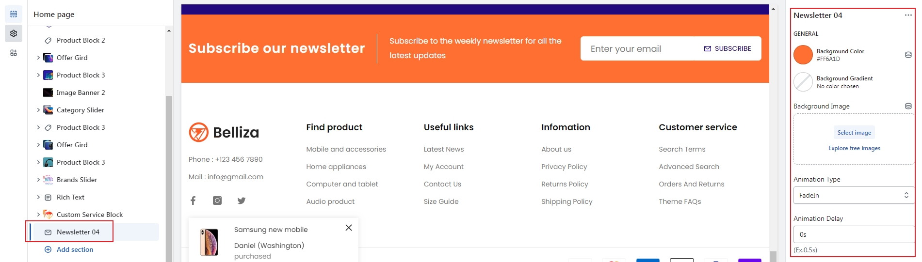 Input and Button Placeholder Text, Placeholder Color, Input Background Color, Input Border Color, Button text, Button Width and button style