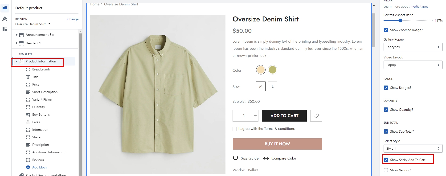Sticky add to cart buttons are used to add a sticky bar with an add to cart button and the necessary product details to Shopify. The conversion rate of the product page is aided by the custom add to cart button Shopify code.
