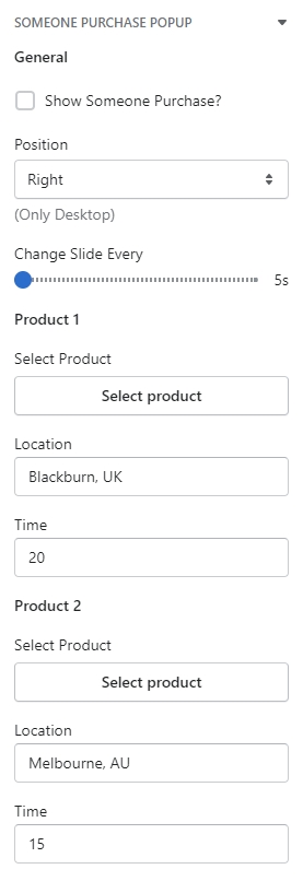 Toggle the feature to show the popup telling someone has purchased a particular item.