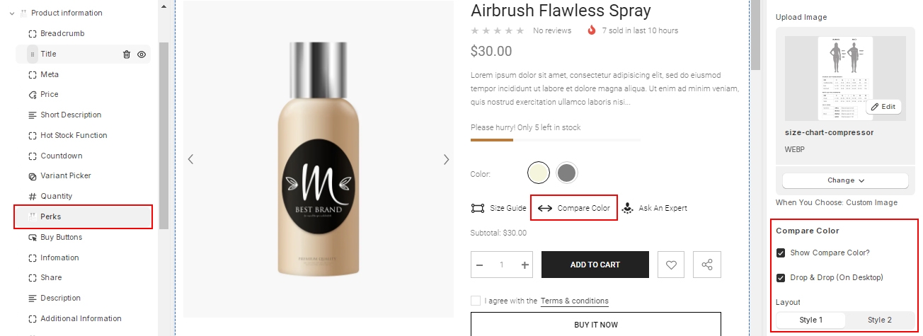 Compare Color provides your customers a visual look and comparison between many colors of a product. After that, they can easily make a purchase decision and be satisfied more with the choice.
