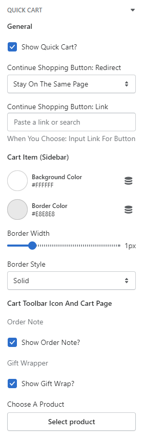 Select the style of the sidebar cart's border either to be solid, dashed or dotted.