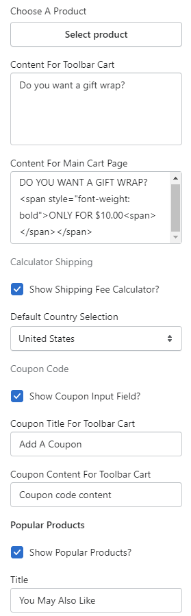Fill in the text to instruct customers to add gift wrap product to cart on sidebar cart.